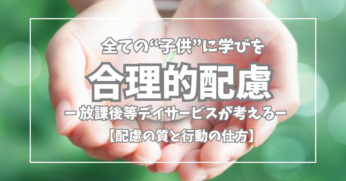 合理的配慮は、“子どもの特性を前提にした支援設計”であり、すべての子どもに平等な学び・参加機会を保障するための不可欠な手段です。法制度の改正により、放課後等デイサービス等支援施設にもその提供責任が強まる中、理念を現場運用へ結びつける力量が施設の質そのものを左右します。