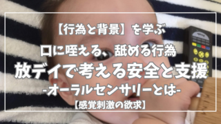 支援 口に入れる・舐める行為が止まらない……放デイで考える安全と発達の支援 1. はじめに:なぜ「口に入れる・舐める行為」は放デイで目立つのか放課後等デイサービスの現場では、特に幼児期〜小学校低学年で、玩具や床のものを舐めたり、手にした物を口に入れてしまう行動が見られることがあります。こうした行為は、衛生面のリスク... 2025.12.16 支援